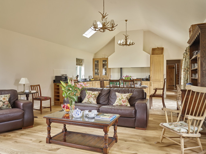 Head inside to unpack your hamper of local delicacies: the kitchen’s equipped with traditional Aga, a SMEG electric oven & gas hob and an antique oak table, all you need to cook up a feast. (And a dishwasher to clear it up afterwards.) If the weather turns English, stoke up the wood burner with complimentary logs from the estate and sink into a rocking chair.