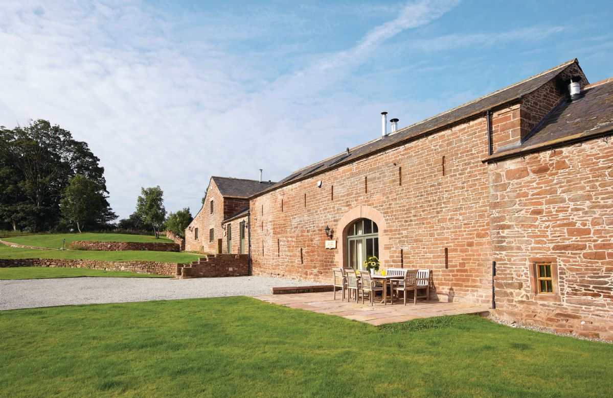 The vaulted ceiling dining hall opens through to the spacious farm kitchen with a stables door leading to the private gated rear garden. When the sun appears, you can relax on your private terrace and enjoy the views over the Eden Valley and the Pennines.